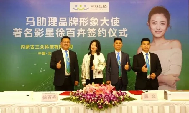 2019年4月22日,“馬助理品牌形象大使徐百卉簽約儀式”在北京鵬潤國際大酒店隆重舉行。內蒙古三眾科技有限公司聯合創始人、董事長冀文先生、聯合創始人、總經理趙云先生、聯合創始人、副總經理孫凱先生、著名影星徐百卉等嘉賓及多家媒體出席本次簽約儀式。